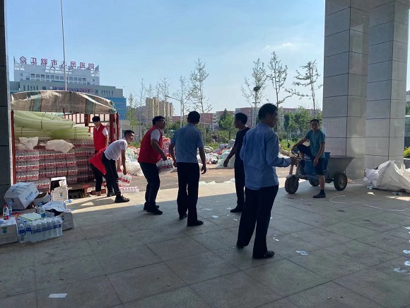 (凱瑞集團支援人員進(jìn)行物資交接并協(xié)助卸運)