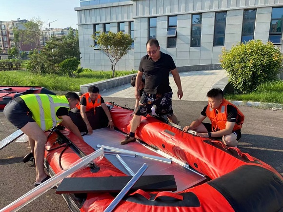 (支援隊員現場(chǎng)組裝救援設備)